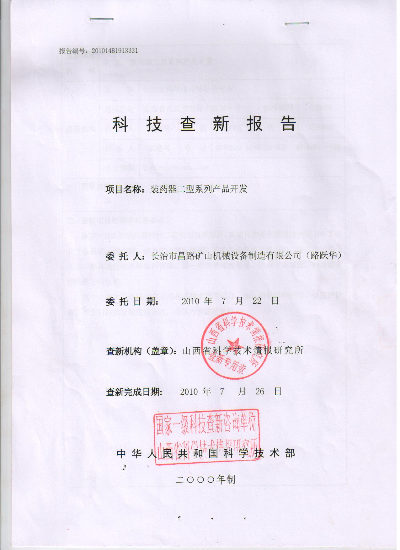 裝藥器二型開發(fā)科技查詢報(bào)告 國家一級科技單位